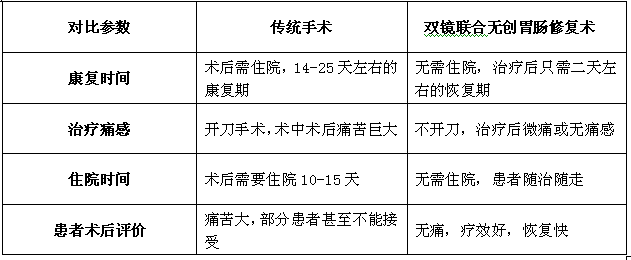双镜联合无创胃肠修复术与传统疗法相对比: